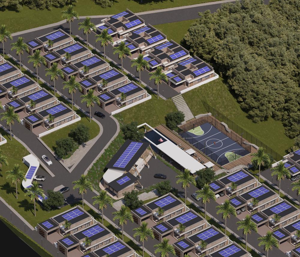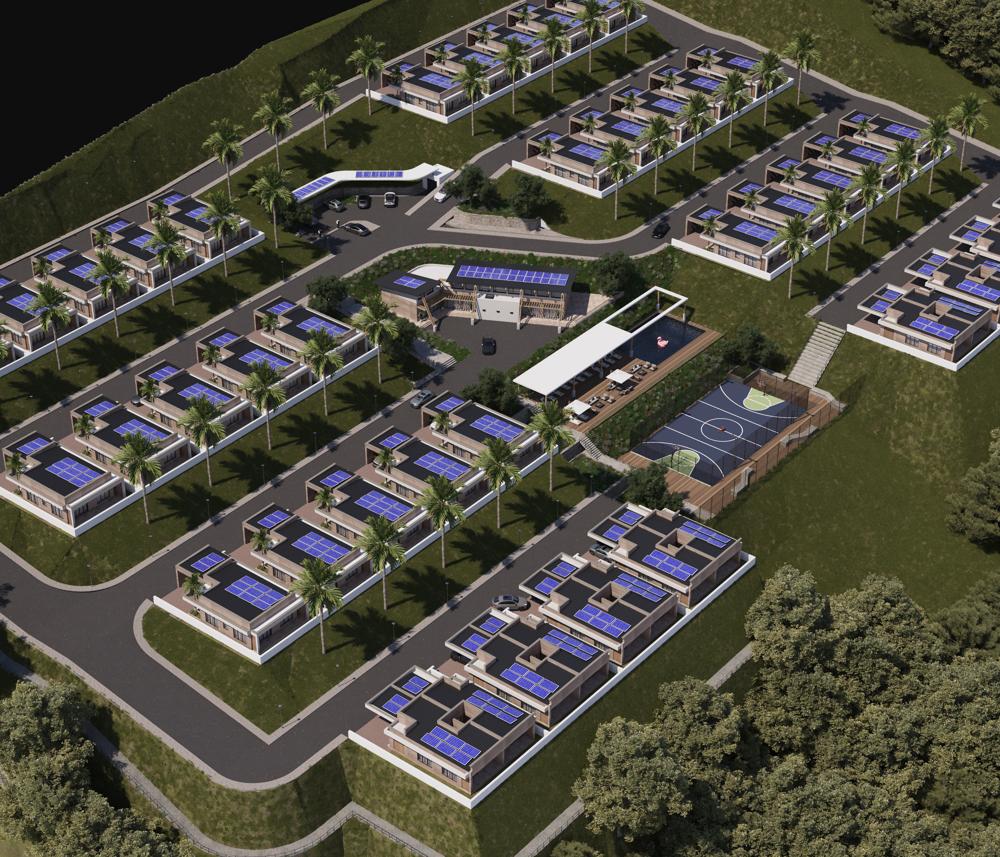 Set in the scenic highlands of Ikogosi, this gated residential community is phase 2 of our master plan for the 10 hectare estate. It combines contemporary design with renewable energy living. Rows of low-rise homes feature rooftop solar panels and are surrounded by landscaped streets lined with palm trees. Community amenities include a swimming pool, sports court, and clubhouse, fostering an active, connected, and environmentally responsible lifestyle